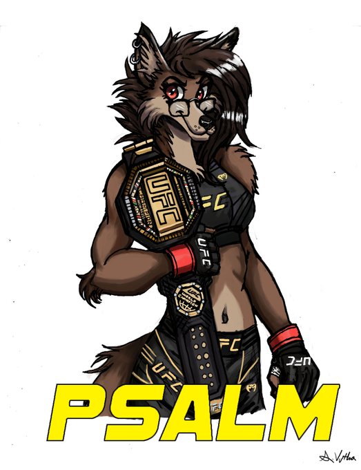 Revenge artfight attack on @WolfPsalm featuring her sona as the UFC Featherweight champ! #artfight #artfight2021
