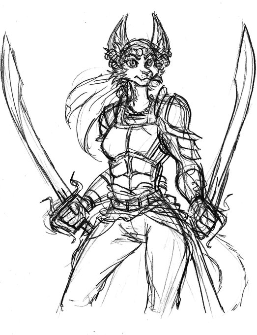 Day 4 of #Swordtember is Scimitar and here's a sketch of my cat lady character Mayflower wielding a pair of scimitars! Based of my own prompt list as well!