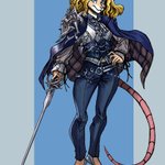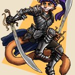 Here's a painting I did of my cat lady character Mayflower in her prime as a warrior wielding her twin Kilij swords into battle! furaffinity.net/view/38222637/ #Swordtember