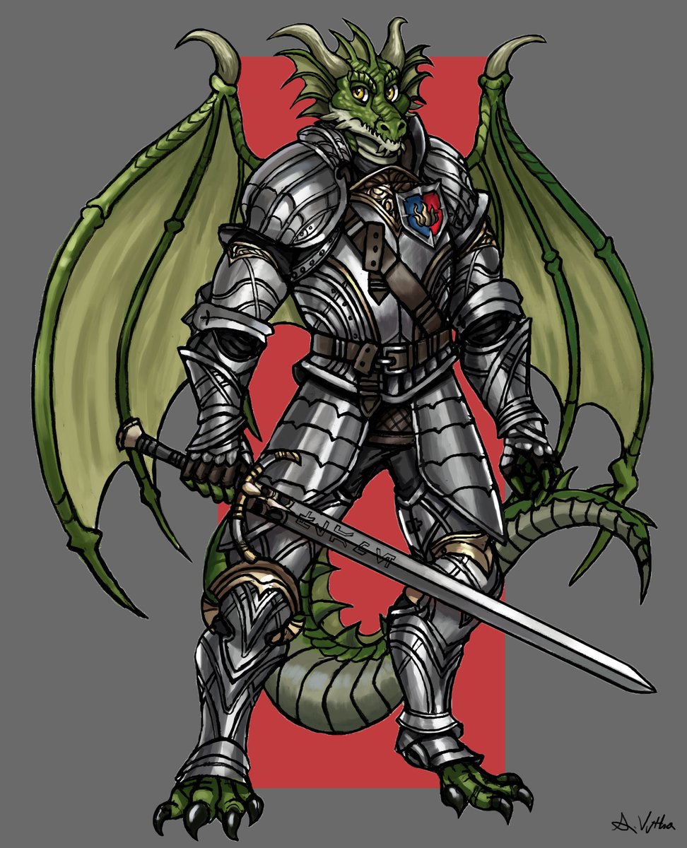 Here's a paladin dragonborn character that I came up with! his name is sir Robert Flamesparke. #dndart #DnDcharacter