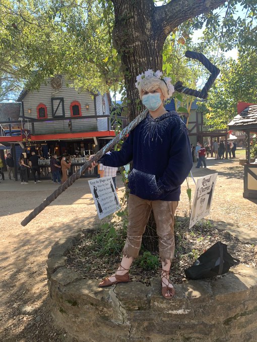 Jack Frost finished cosplay! With added flower crown and mask of course 😁 From the #texasrenaissancefair on halloween! Going back on the 28th too :) #jackfrost #cosplay #cosplayer #trf #renaissancefair #riseoftheguardians #jackfrostcosplay