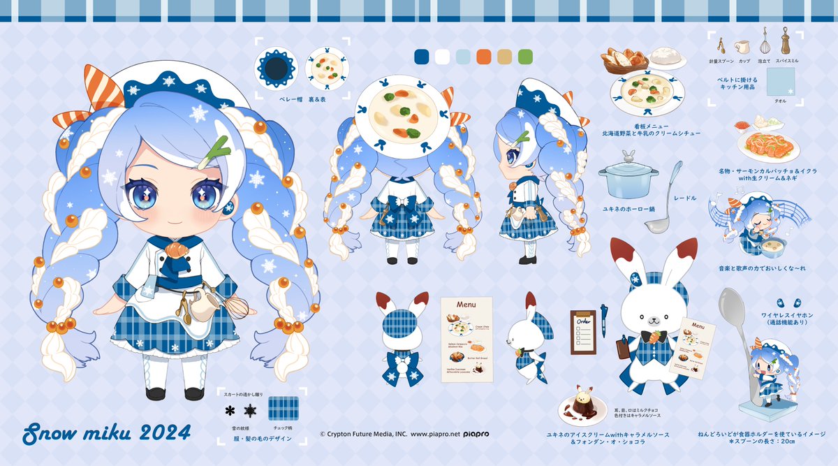 ミクの日!雪ミクのデザインを描きました。 ❄️🍲🥖👩🍳🐰❄️ 気に入っていただけたらとてもうれしいです、よろしくお願いいたします。 🔗piapro.jp/t/ne_d #雪ミク2024 #初音ミク