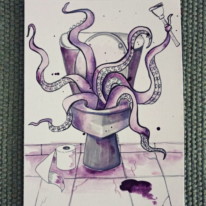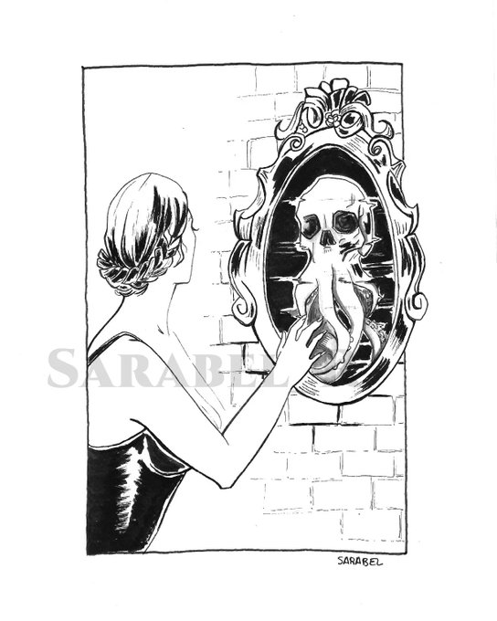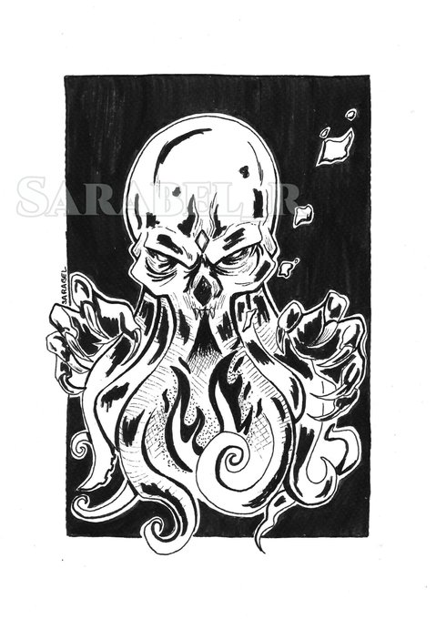 Aún quedan algunas láminas disponibles por el #Inktober sobre #HorrorCosmico 🐙 Son láminas originales a tinta 🐙 Formato 24 x 18 cm 🐙 A la venta por 12€ cada una 🐙 Interesados DM o correo sarabelartes@gmail.com