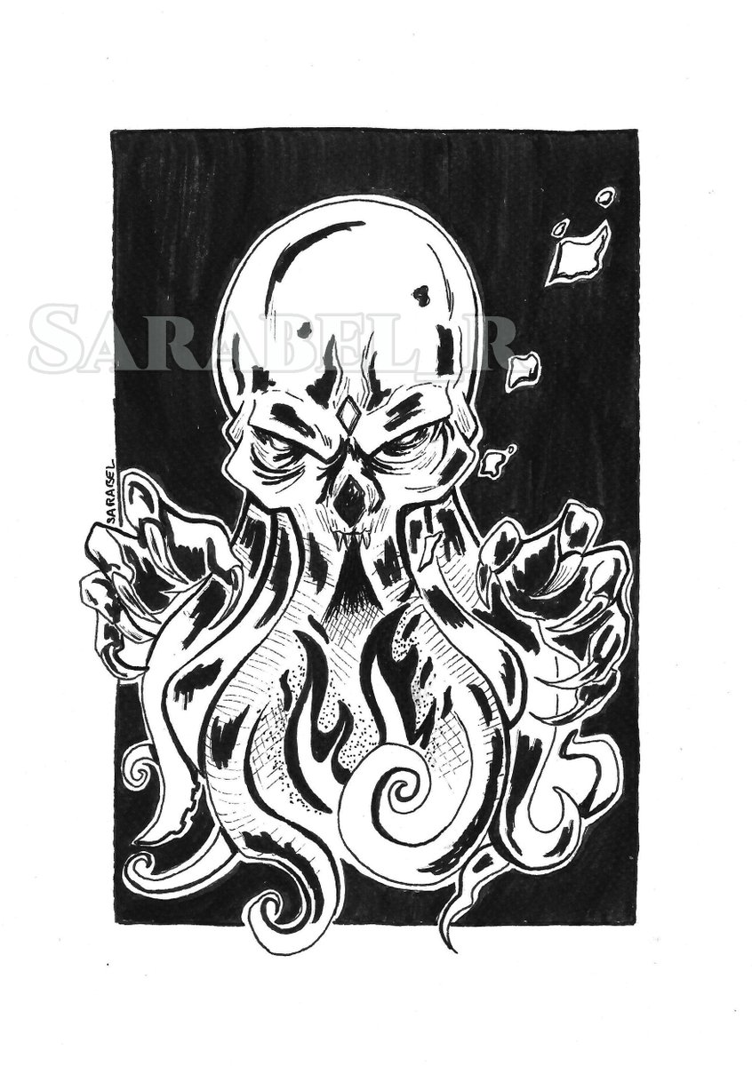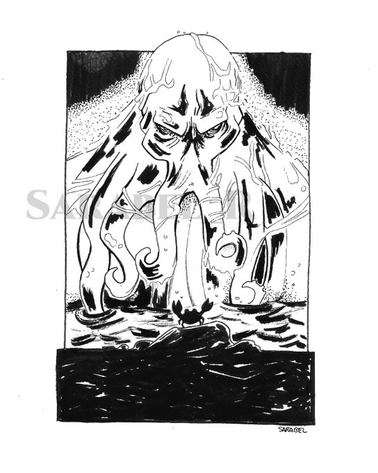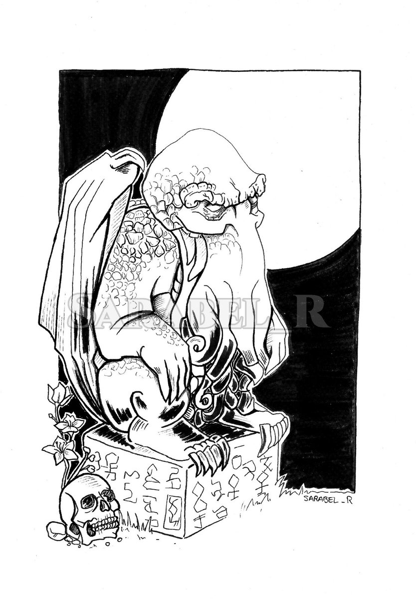 Después de millones y millones de años el gran Cthulhu era libre otra vez. 🐙 Lámina original a la venta (12€) 🐙 Formato 24 x 18 cm 🐙DM o correo sarabelartes@gmail.com #inktober2022 #inktober #inktoberday1 #inktobergargoyle