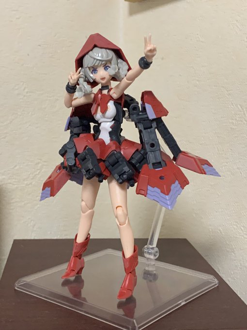 メガミデバイス Chaos & Pretty 赤ずきん 弄ったのは胸元リボンを少し上げたのと、お腹周辺に紐付けたくらい。 あとタイツにして太腿にレースシール貼ったりとかも。 モチーフが良いよね、このキット。可愛い。 #メガミデバイス #カオスアンドプリティ #赤ずきん