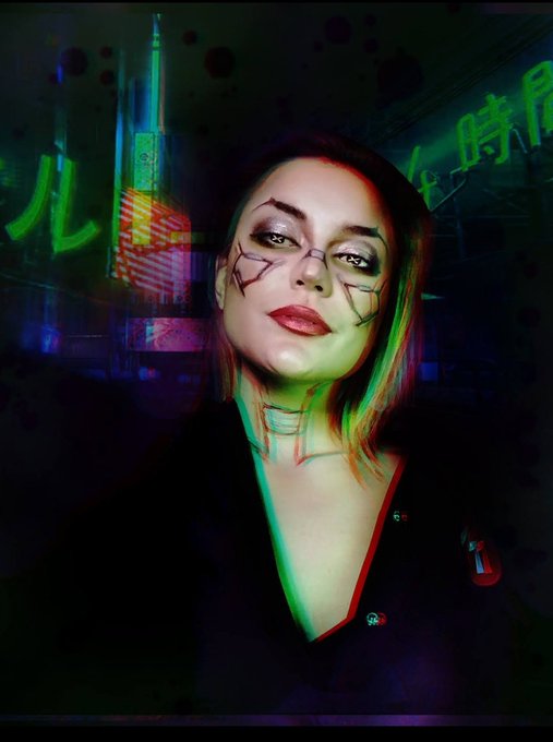 I have liked what I've been able to play so far so here is a #Cyberpunk2077 look/edit. I did the makeup mostly from memory so it isn't spot on. Also sorry the editing is kinda heavy its been a long time. #cosplay #art