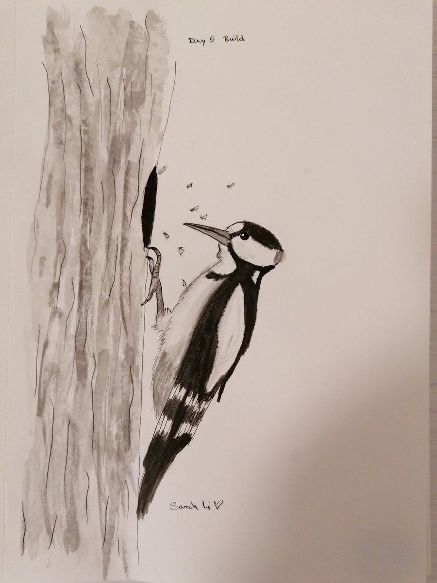 Inktober Day 5 Build #traditionalart #inktober2019 #inktober #penandink #inktoberbuild #art #build #woodpecker #bird #inktoberday5