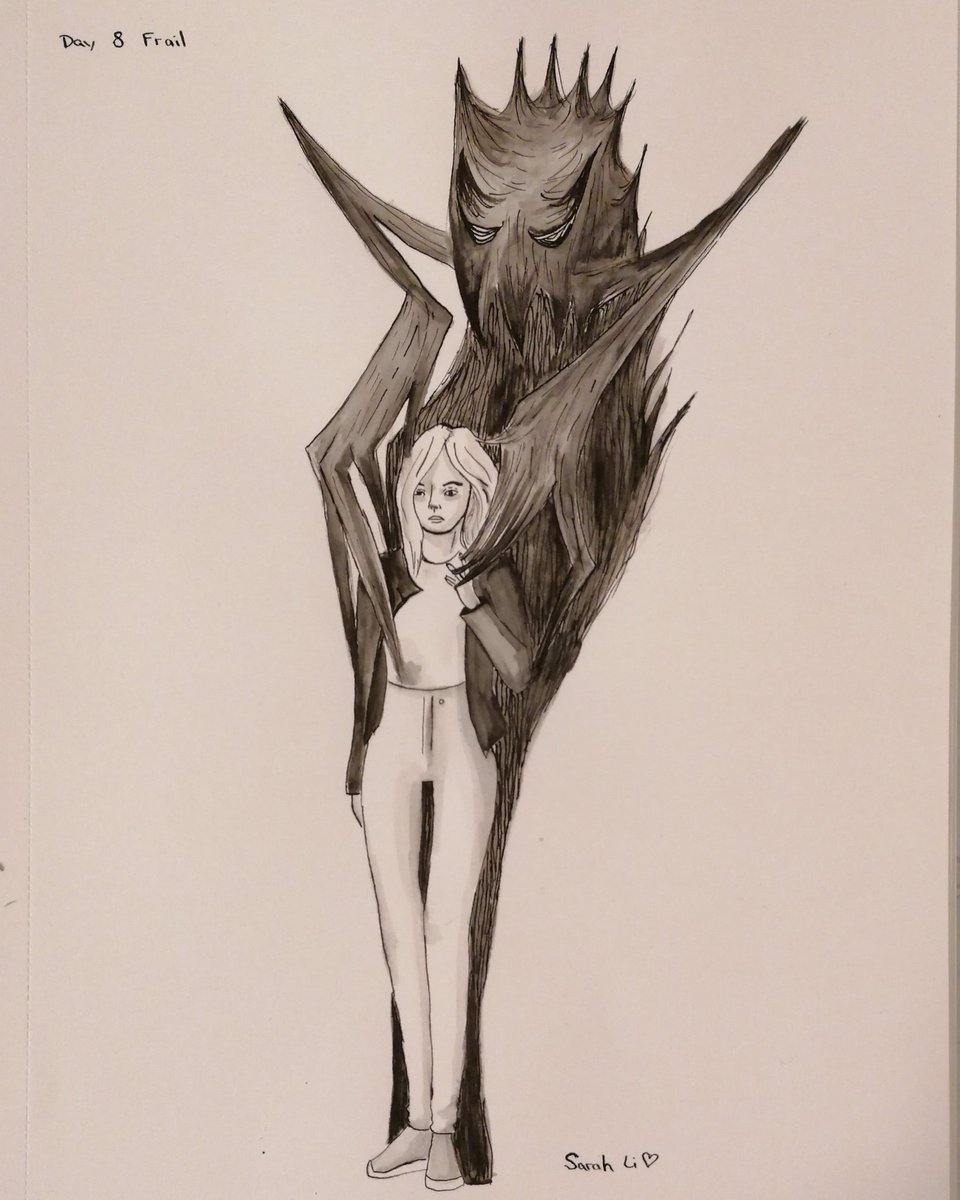 Inktober Day 8 Frail #traditionalart #inktober2019 #inktober #penandink #inktoberfrail #art #frail #demon #haunted #scarry #inktoberday8