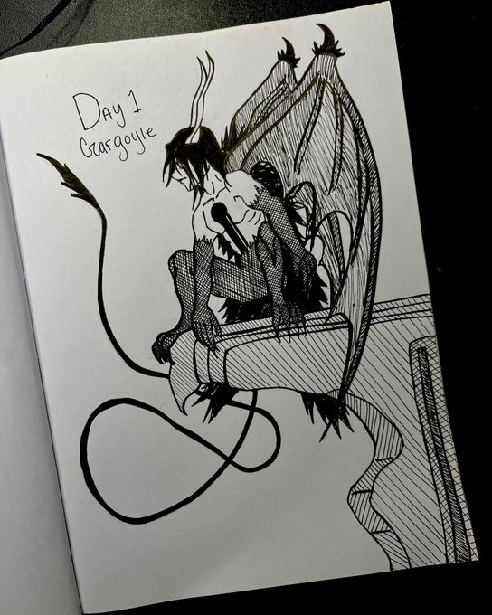Inktober Day 1: Gargoyle Using a perched Ulqiorra for the prompt! #ulqiorra #inktober #InkToberDay1 #inktober2022 #animetober