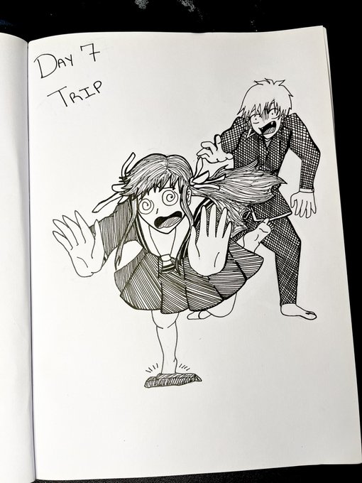 Inktober Day 7: Trip! Kyo and Tohru, she can be clumsy sometime 😂 #inktober #intober2022 #inktoberday7 #animetober #art #fanart #fruitsbasket #kyo #kyosohma #tohru #tohruhonda