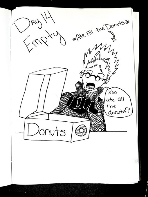 Inktober Day 14: Empty! Vash will find out who ate all the donuts if it’s the last thing he does! #inktober #inktober2022 #animetober #inktoberday14 #vashthestampede #vash #trigun #art #fanart #animefanart #animeart #anime