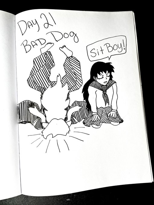 Inktober Day 21: Bad Dog! Inuyasha has definitely been a bad dog 😂 #inuyasha #kagome #sitboy #inktober #inktober2022 #inktoberday21 #animetober #art #fanart #animeart #animefanart