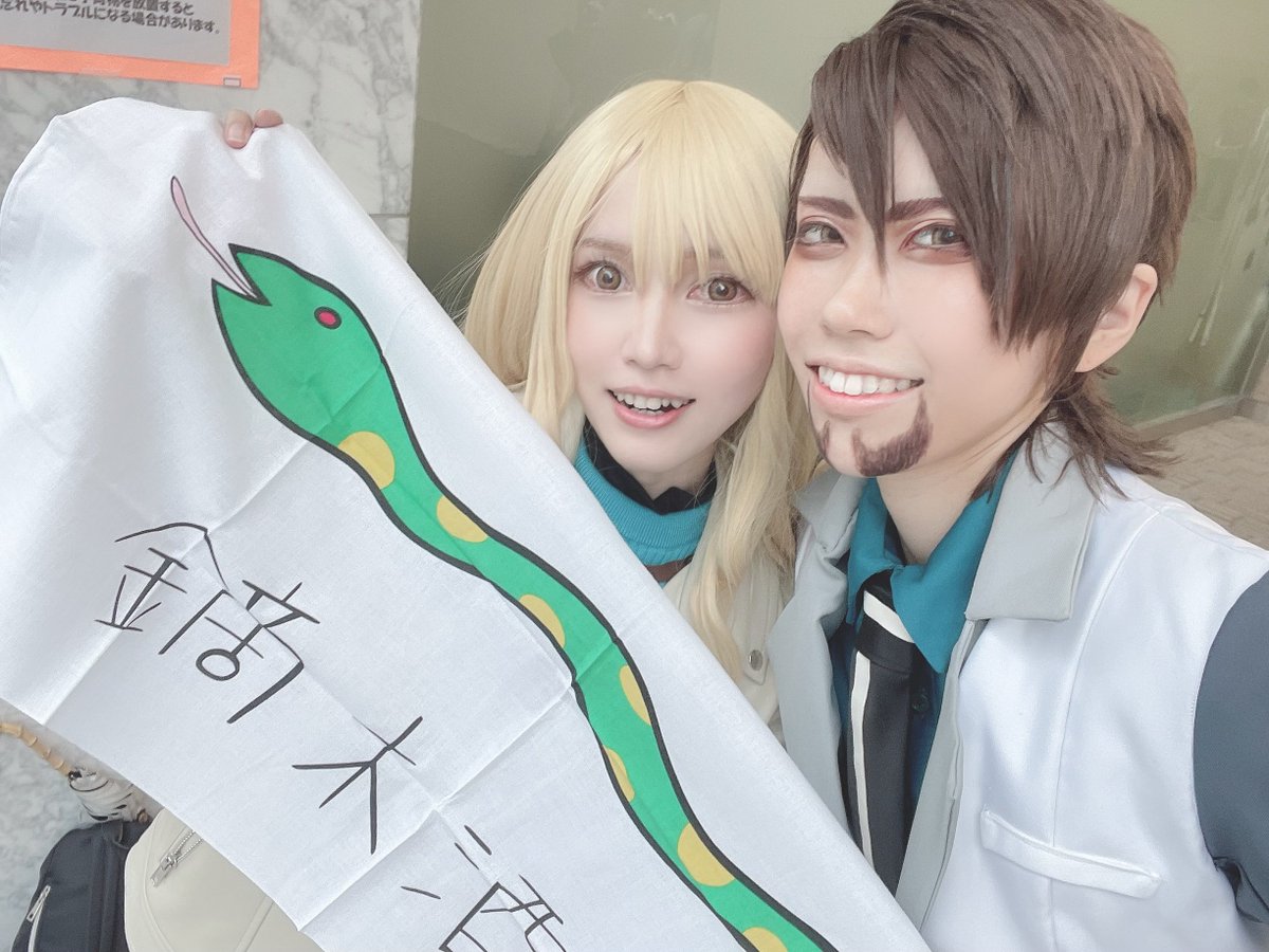 念願のSK∞のミヤS衣装やってきた!😂💖 しかも素晴らしいチェリー様&キャップマンと✨ 相方不在併せ楽し過ぎたし写真も撮り合いだけどみんな天才で終了時間まで秒だった🤔 ありがとうございましたー!!次回もめっちゃ楽しみ💞 🌸(@marun_cos) 🐍(@RiCo_shuka)