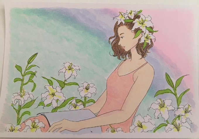 This is before putting colors. 着色前です。#illustration #illustrator #drawing #art #digitalart #digitalillustration #flower #flowers #lily #woman #イラスト #アート #デジタルイラスト #花 #花束 #ユリ #女性イラスト