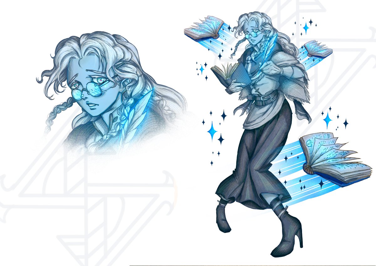 I MADE NEW art commission for my friend @antiflunky ^^ designing a character 🤩🤩💙💙 a librarian witch 💙🔹🔷 so what do u think of it ??? 🤔 #digitalart #rkgk #characterdesign #artshare