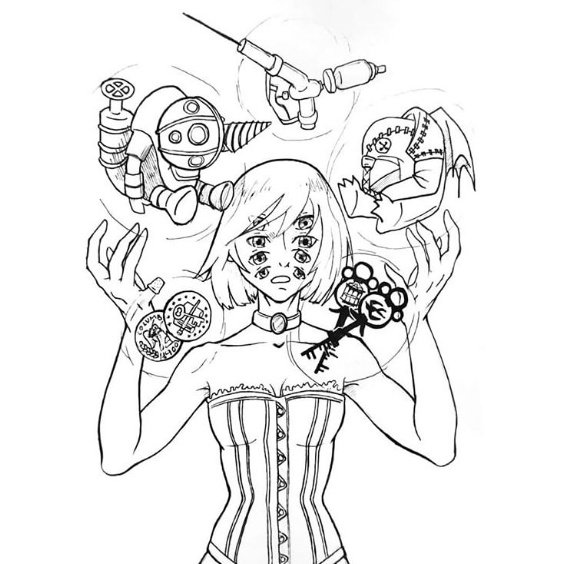 Day 5 - Elizabeth (BioShock Infinite) ”The circle is unbroken" Deseaba dibujarla, es verdad que no estoy del todo contenta con el resultado, pero quiero corregirla y colorear en un futuro, ¡espero que os guste! #inktober2019 #inktober #game #bioshock #infinite #elizabeth #circle