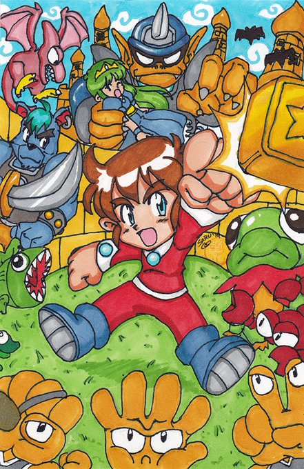 Here's a hand drawn Alex Kidd in Miracle World canary I made with Bianyo paint makers and ink pen for #inktober Arte de Alex Kidd en Miracle World dibujado a mano que hice con los pintores Bianyo y la pluma para #inktober #sega #FANART #alexkidd #marker #videogame #Retrogaming