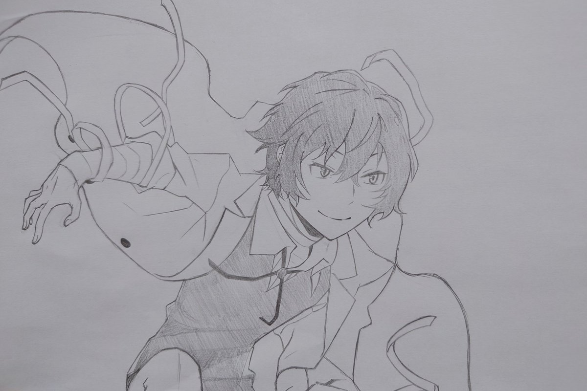 No.41 文豪ストレイドッグス/太宰治 リクエストありがとうございました! 服とかなびいてる感じ難しすぎ💦久しぶりにしては頑張りました。 #模写 #文豪ストレイドッグス #太宰治 #絵描きさんと繋がりたい