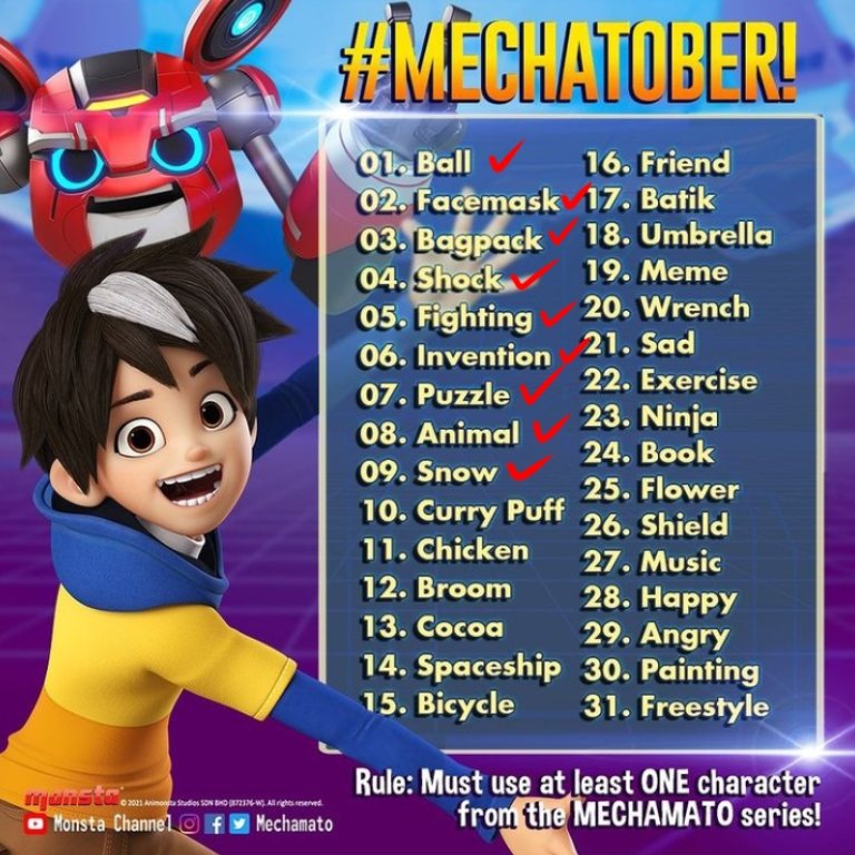 Day 9 : Snow Poor you Pian got hit by snow Hope you like it ❤❤ #mechatober #mechamato #mechamatofanart #snow #inktober #inktober2021 #winter