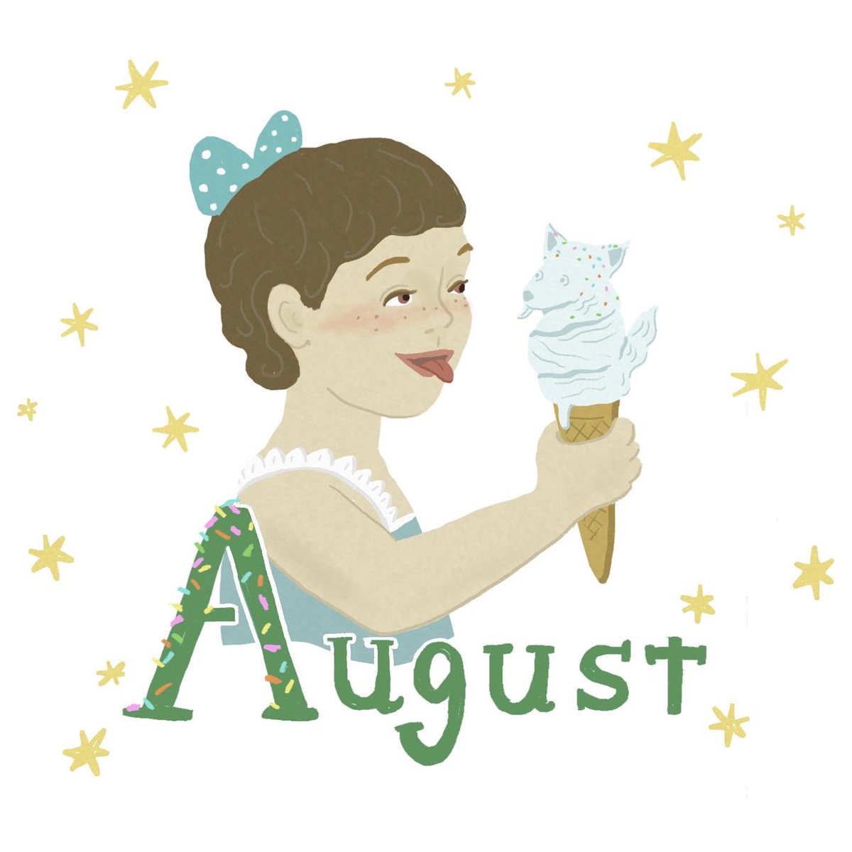8月カレンダーイラスト🐶🍦 #イラスト #イラストレーター