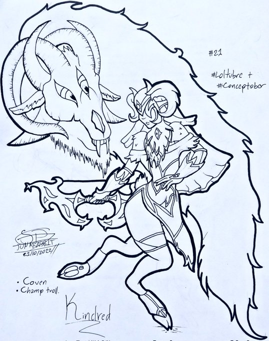 Esto era para ayer, pero al menos está hecho 👍 Kindred adc es troll por alguna razón, así que acá están como parte del aquelarre #loltubre #conceptober2022 #kindred #LeagueOfLegends #ArtofLegends @EraiViolett