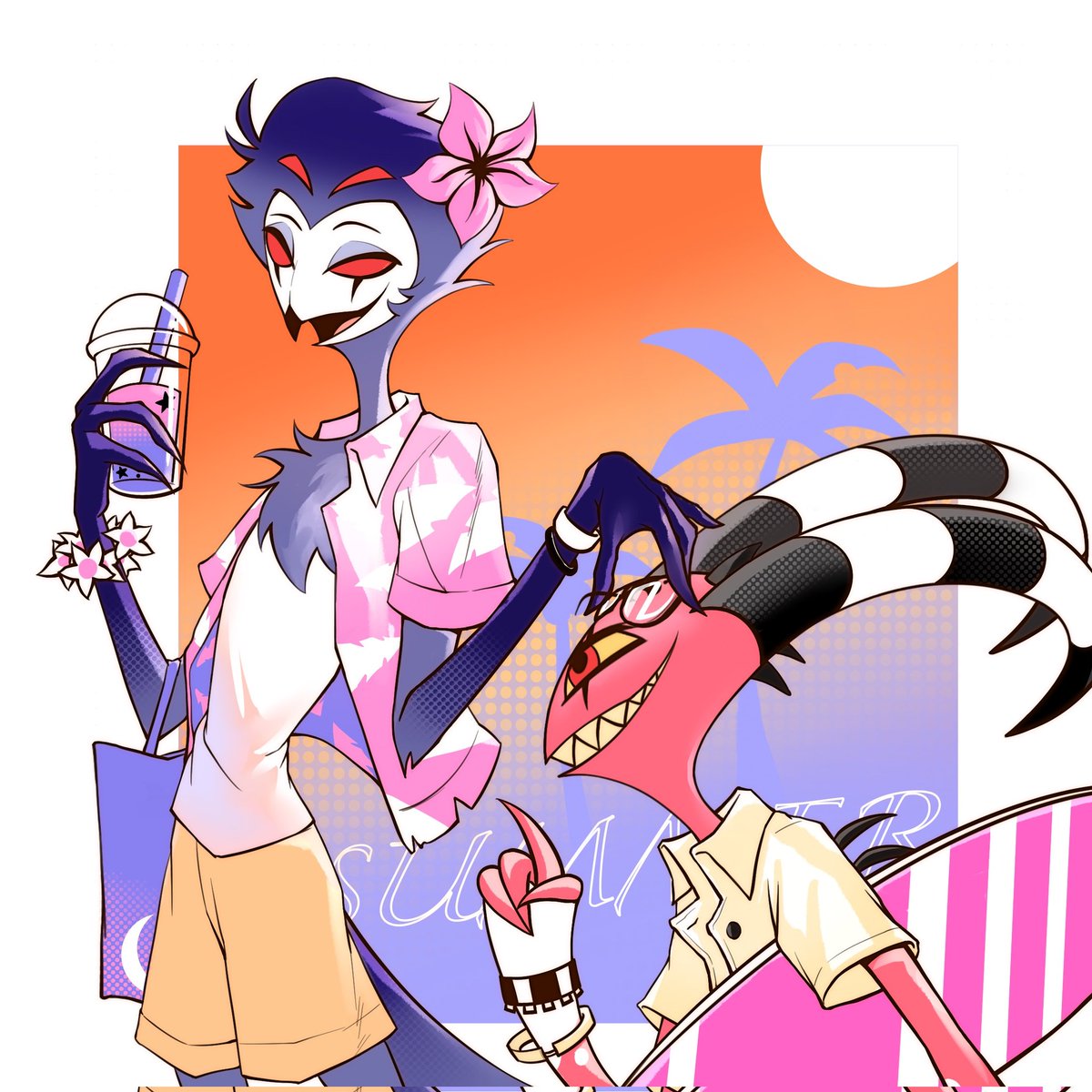 ☀️🌴 #HelluvaBoss #HelluvaBossFanart #Blitzo #Stolas #Stolitz