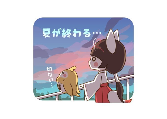 まだまだ暑い日が続きますが、もう夏終わるんだなぁ…と思う瞬間が増えてきましたね✨ 待ちわびていた秋が来たはずなのに、夏の終わりはやっぱり切ないですね… ------------ □LINEスタンプ line.me/S/sticker/1655…… #LINEスタンプ #巫女 #きつね #イラスト #illustration