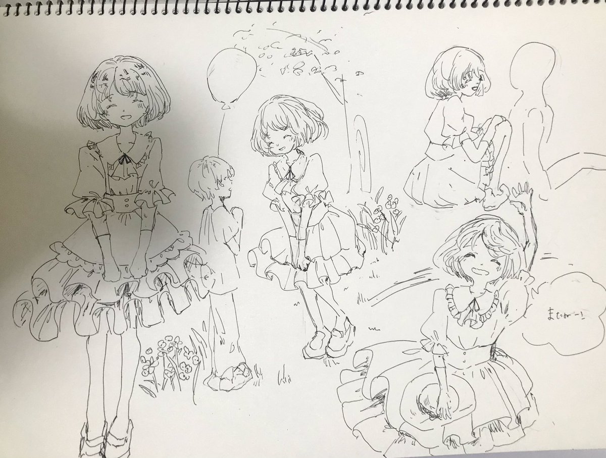 5 33 #仄暗い森の遊園地 追納パート2です! メイン絵の女の子がだんだんとこの遊園地の世界に馴染んでいく様子を描きました…! この後にパークスイーツ売りのクマさんの弟子になり、最終的にチュロス屋さんを開きます🐻❄️✨ 22/09/17 15:52