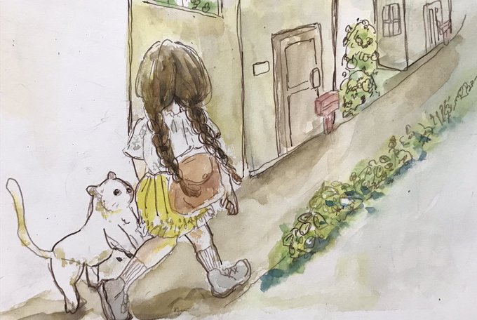 #inktober2022 #インクトーバー2022 テーマ:小走り アイコン左側の女の子です 猫ちゃん描くのむず…精進します