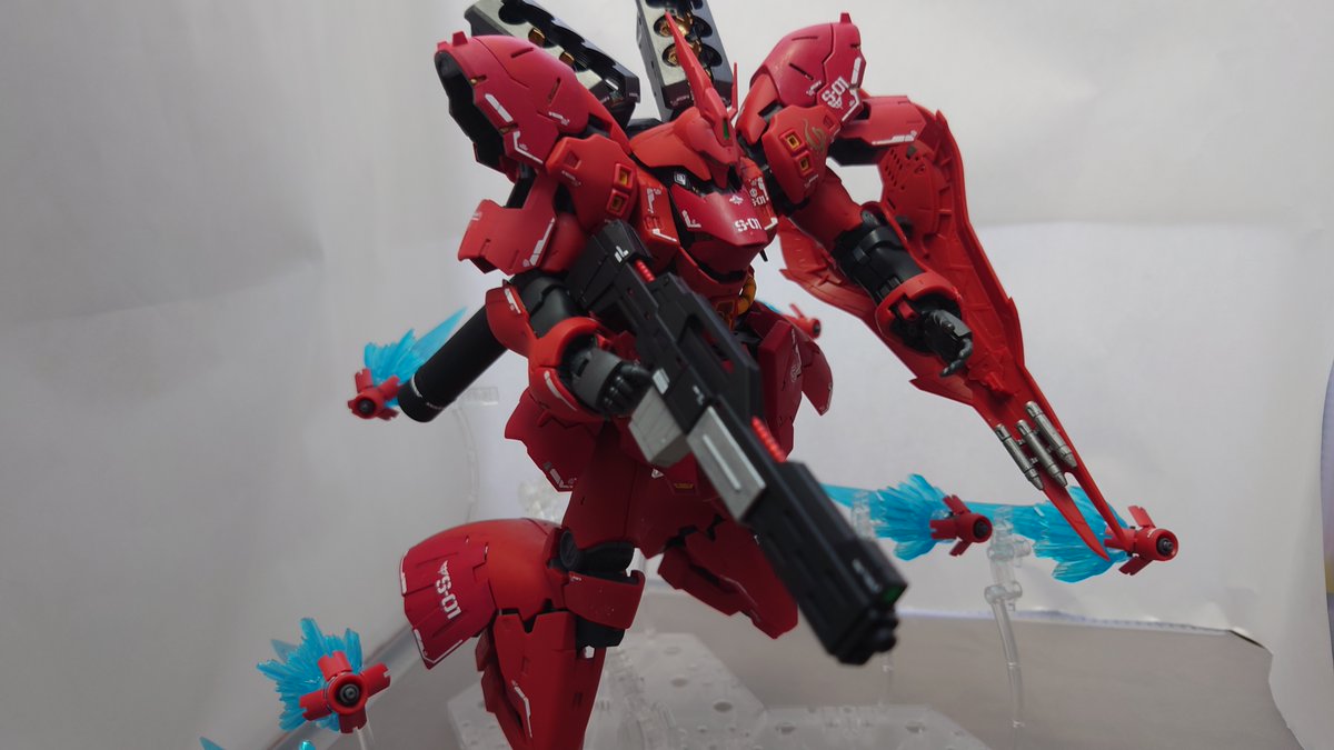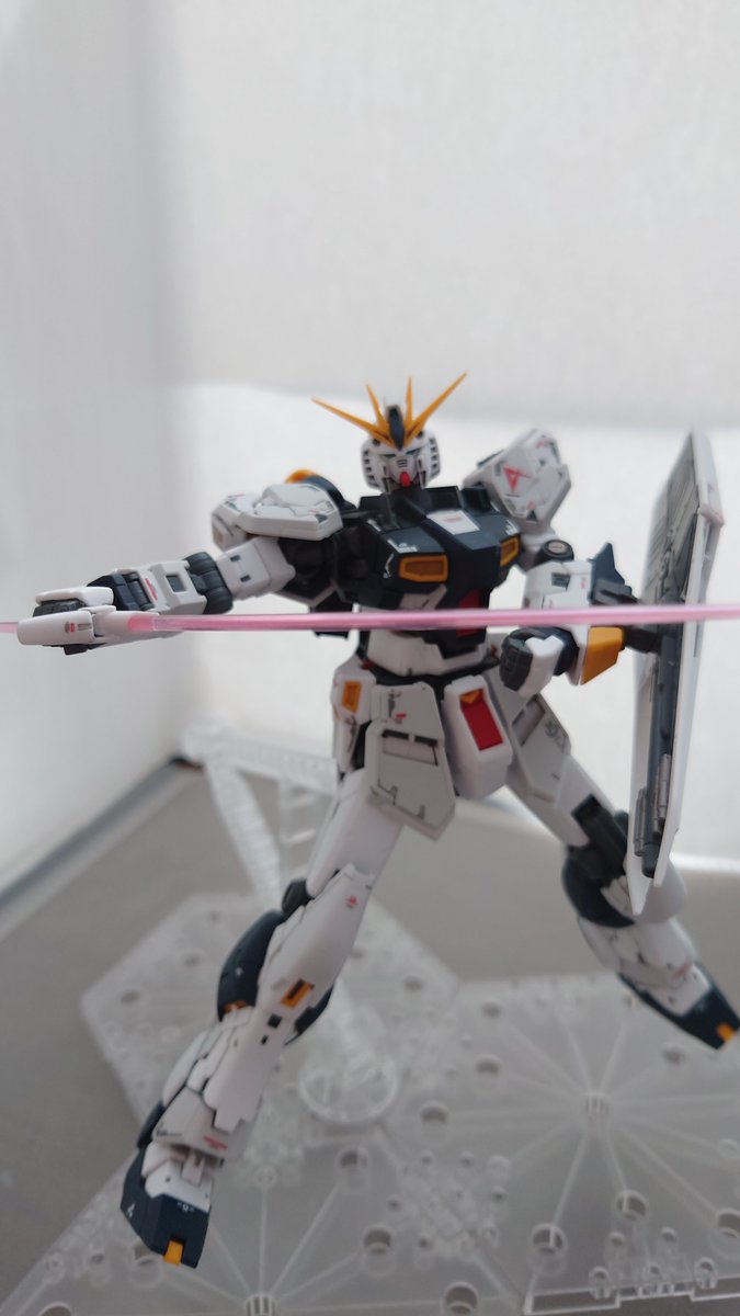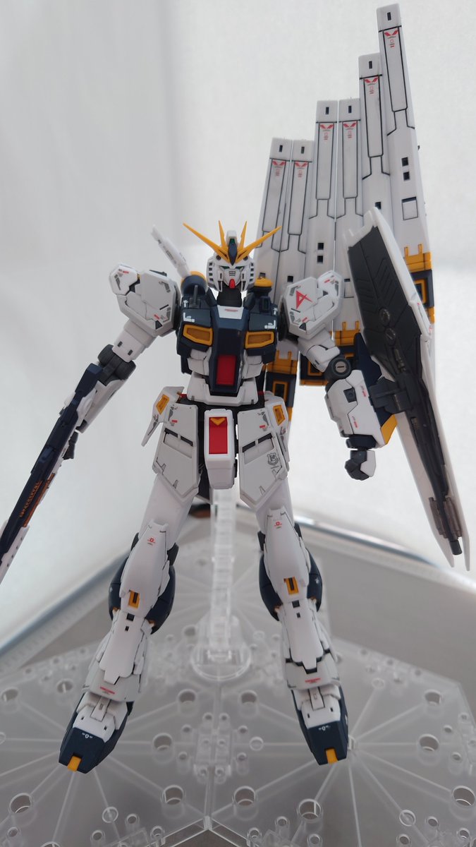 この前作ったRG νガンダムのジェットエフェクトに電飾仕込んでみた これは背景黒とかにしてカメラの設定を変えたらもっとわかりやすくなるんだろうか、難しい #ガンプラの画像貼るとRTされると聞いて #ガンプラ