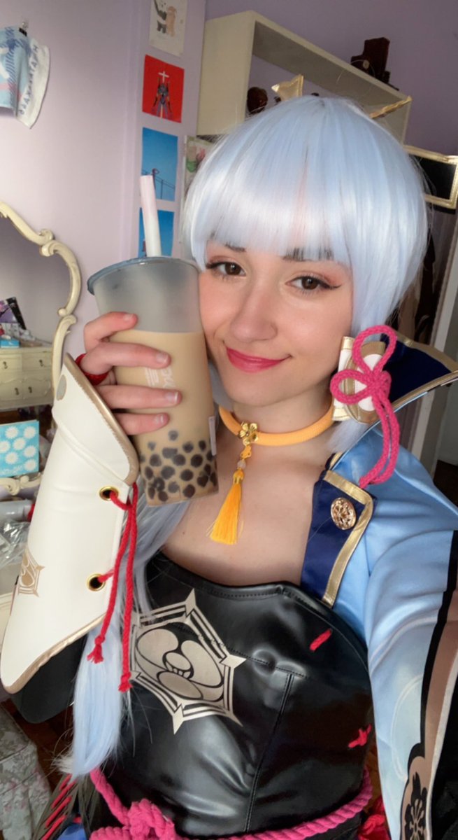 It’s a Kamisato thing 😎🧋 Costume and wig: @uwowocosplay #GenshinImpact #AyakaKamisato #Ayaka #cosplay #コスプレ #原神