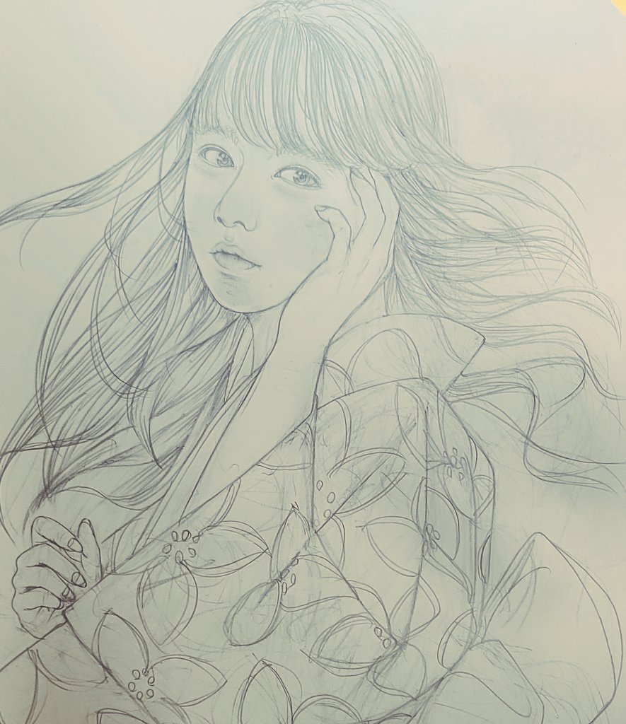 おはようございます! 苦戦中の下描き✏️ #art #artwork #illustration #日本画 #可愛いと思ったらRT #女性 #絵描きさんと繋がりたい #線画 #ヘアースタイル #浴衣 #夏