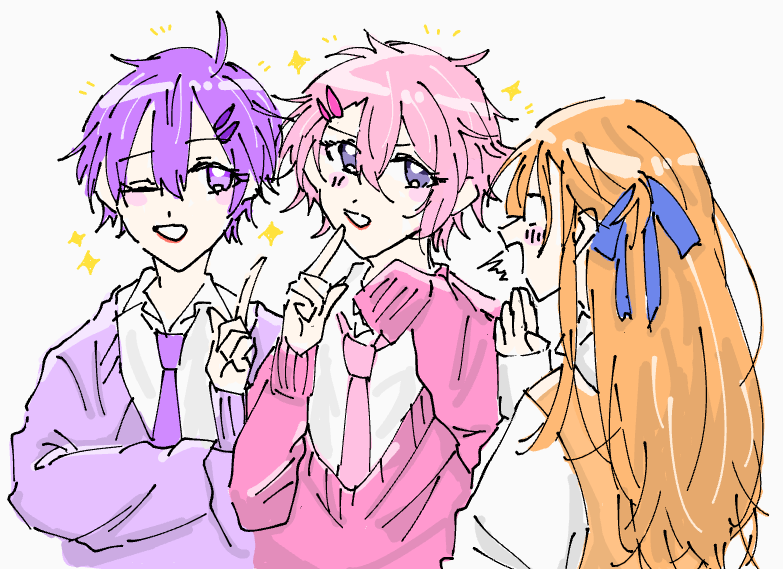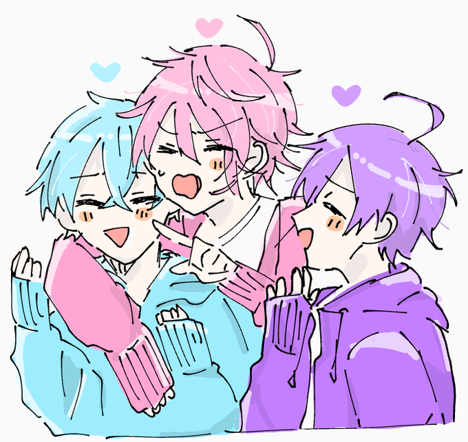 ※女体化注意 な3人が大好き 💗「エク○ディアハマってるんだよね…」 💜「ヴァイス○ヴァルツの方がよくね?」 🧡「ッ…ハハッwww」 うろ覚え🙏 #ななもりぎゃらりー #さとみギャラリー #ジェルくん