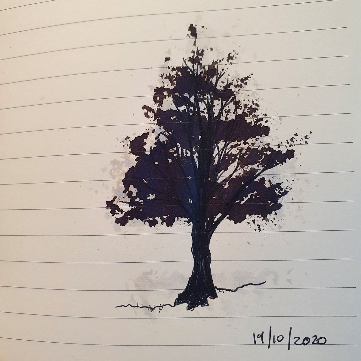 #Inktober #Inktober2020 A tramstop in the rain, from the car, while I wait for breakdown assistance to come and help me...