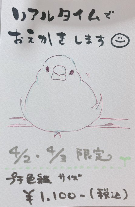 3 28 ドローイングやってます! 似顔絵でなくても大丈夫です! #桜とことり展 22/04/02 15:32