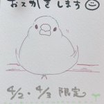 9 47 ランチマット描かせていただきました!! ぽかぽか陽気、お花見にしに行く文鳥たちをイメージしました✨ twitter.com/kotoricafe2014… 23/03/20 12:21