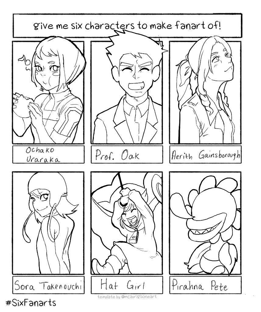 Ok so I definitely plan on coloring this but just not at the moment. I really wanted to push myself since I’ve been in a bit of a mental slump lately. Here’s my #SixFanarts #BNHA #Pokemon #FinalFantasyVIIRemake #Digimon #AHatInTime #MarioBros