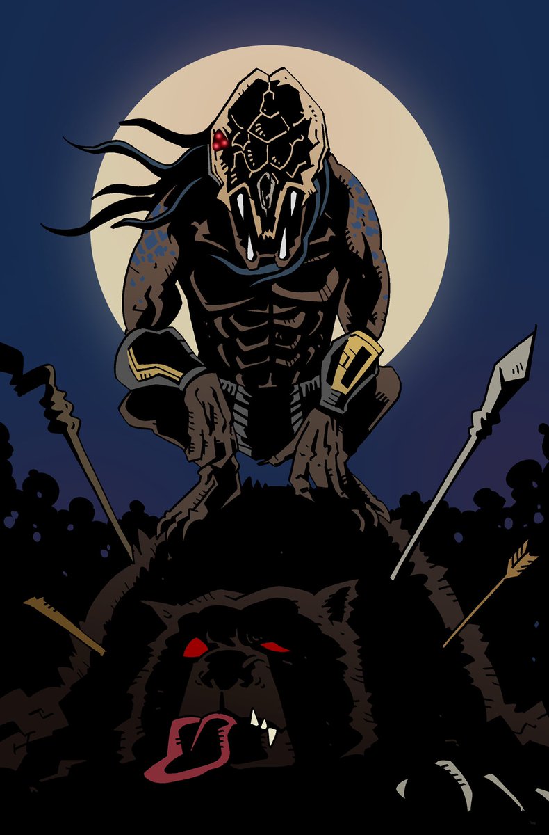 プレデター ザ・プレイ 骨マスクかっこよすぎるなあ。腕チョンパされてもほとんど怯まないし、フィジカルは過去最強では。あと盾展開シーンがカッコよすぎ。 これだからプレデターはやめらんねえぜ。 #プレデターザプレイ #イラスト