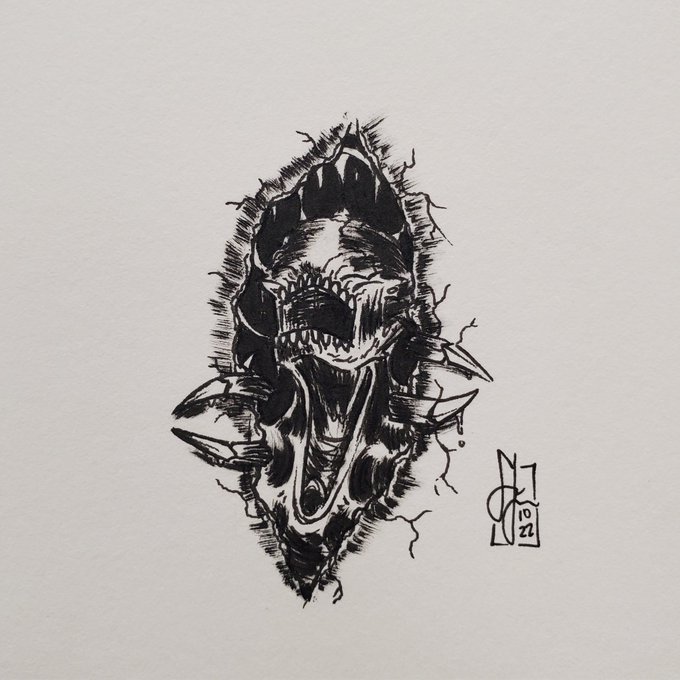#Inktober Day 9: Nest A newly hatched Thrall breaks free of its incubator. From its chalky throat, evil speaks. #Destiny2Art #AOTW