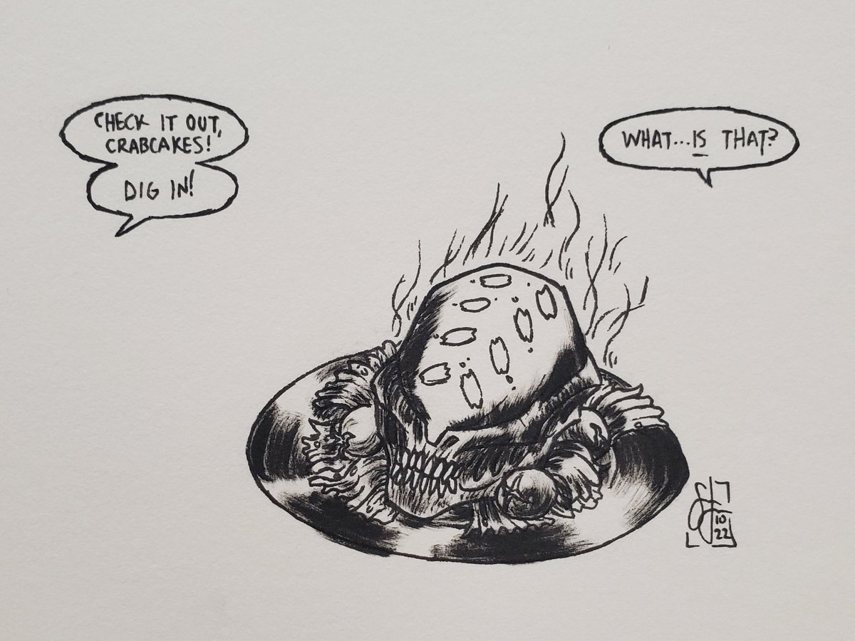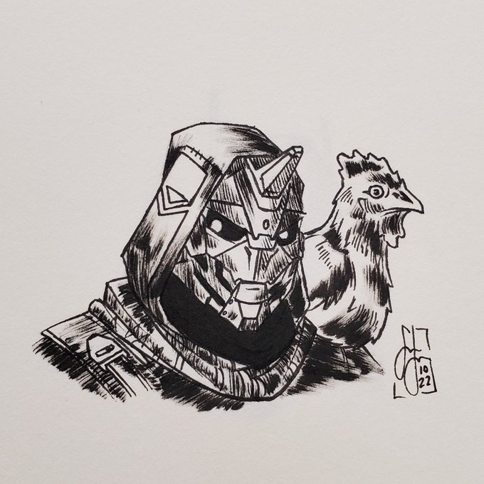 #Inktober Day 27: Snack Eido finally gets a chance to try Drifter's infamous, uh..."cuisine". #Destiny2Art