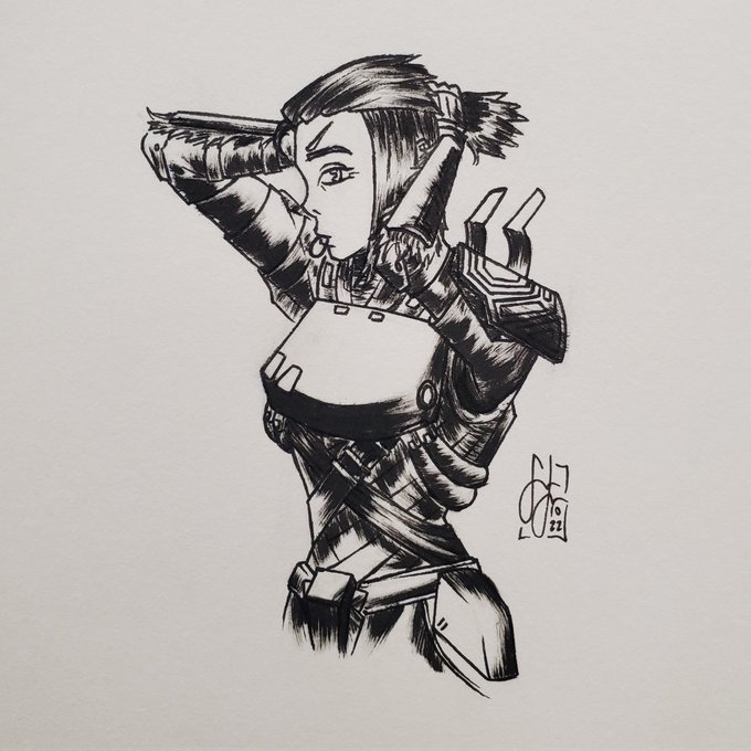 #Inktober Day 19: Ponytail Sybil's philosophy has always been form over function, and to her, there's no point in winning if you don't look good doing it. 💎 #Destiny2Art