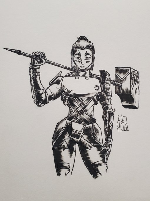 #Inktober Day 26: Ego The word "ego" pretty much embodies Sybil's entire personage. That, and the use of hammers nearly as big as her whole body. #Destiny2Art