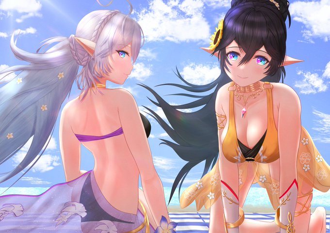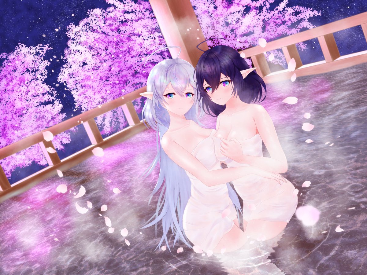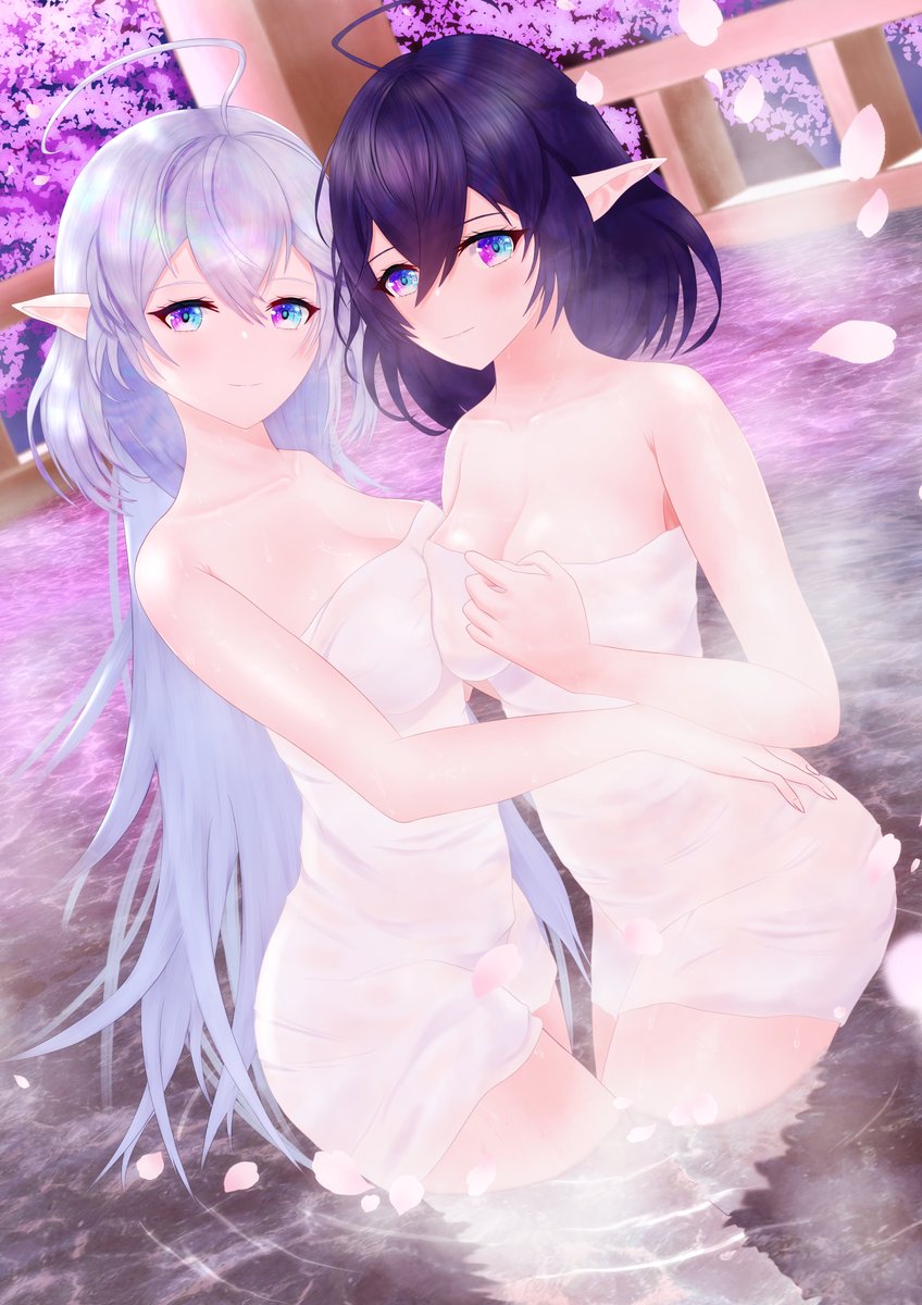 温泉ノクタリカ&アリアシカ♨ 棒人間しか描けない状態から1年ちょっと経ったので 今出せる全力でイラストを描いてみました! pixivにはタオル無しの差分あります↓ pixiv.net/artworks/97327… #白猫お絵描き #白猫プロジェクト