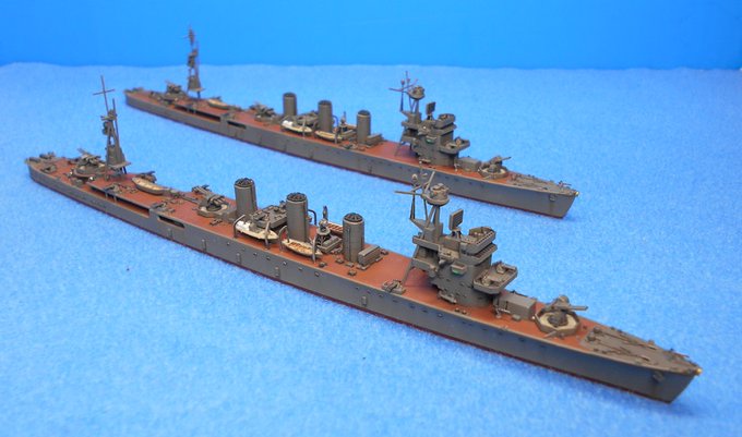 #今月作ったプラモ晒そうぜ 今月はフジミ1/700「軽巡洋艦 五十鈴」を製作。 いずれかの状態を再現できるキットの場合は普通なら選択式となるが、このキットの場合は両方製作できるのが特徴。 “同型艦が無いので2隻も不要”って意見も見られるけど、こういうの私は好きよ😘 目標まで残り12隻。