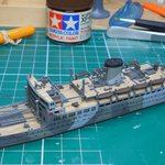 #今月作ったプラモ晒そうぜ タミヤの輸送艦「おおすみ(1/700)」。キットはデテールの省略が過ぎる様ですが、タミヤらしいカッチリとしたキットでした🥰 今回は発売当時と変わらぬ内容のキットを、現行風に仕上げました。アオシマやハセガワの様に実艦の改装に応じてアップデートして欲しいです🥴