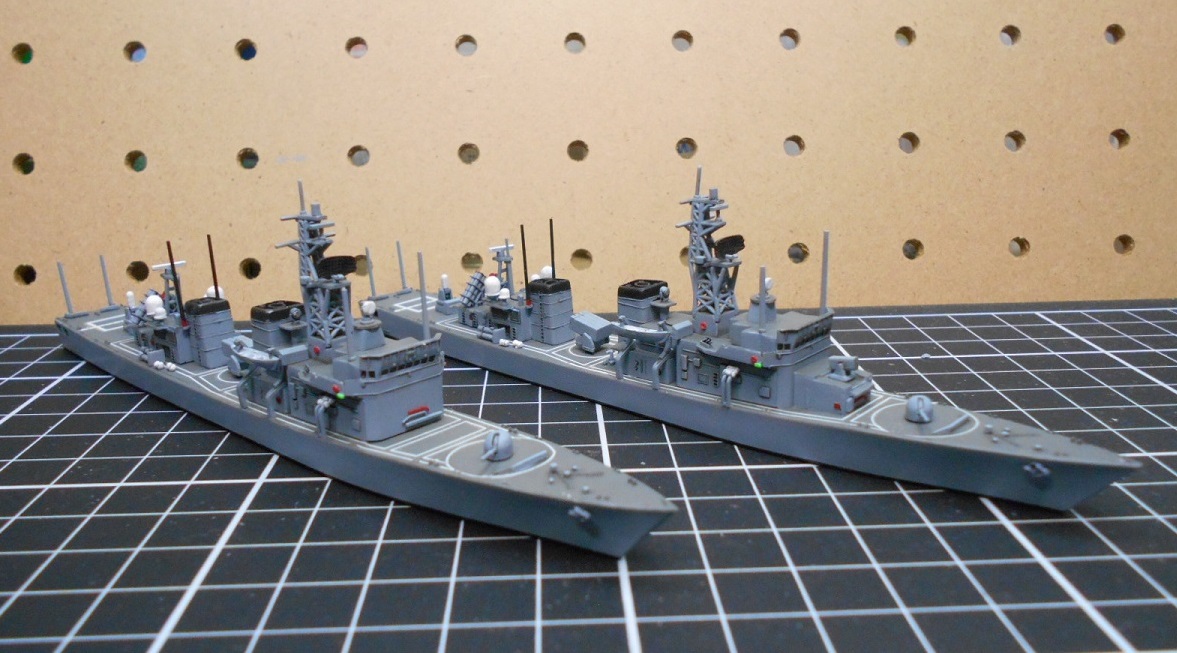 #今月作ったプラモ晒そうぜ 今月はピットロードの旧版「あさぎり」「うみぎり」をベースに、1/700 護衛艦「あまぎり」&「やまぎり」を製作しました。「あまぎり」はSAM装填装置を追加した以外はほぼ素組、「やまぎり」は現行キットに近づけた修正を加えています。