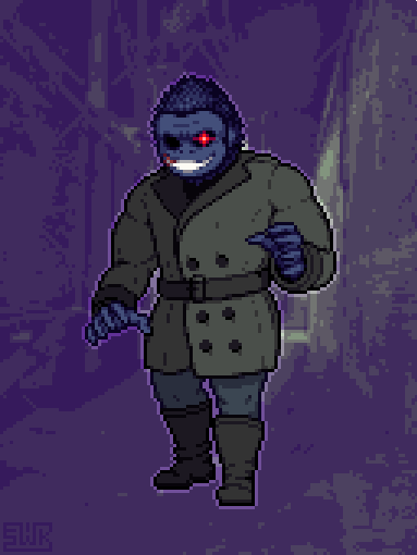 An oddly Halloween-ish gift for @ApeOfTheHour featuring his alternate persona 𝔄𝔭𝔢 𝔒𝔣 𝔗𝔥𝔢 ℌ𝔬𝔯𝔯𝔬𝔯 #pixelart #ドット絵