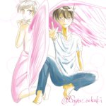 2 11 #リプをもらった番号の色を使って絵を描く #新蘭 配色は番号は23番のエンゼルフィッシュです (グリザイユ塗りなんで指定の色だけど色変わっちゃてますが) なんだろ... 天使の羽に手を伸ばしてさわろーとしてる新一と天使な蘭? 19/08/05 20:57