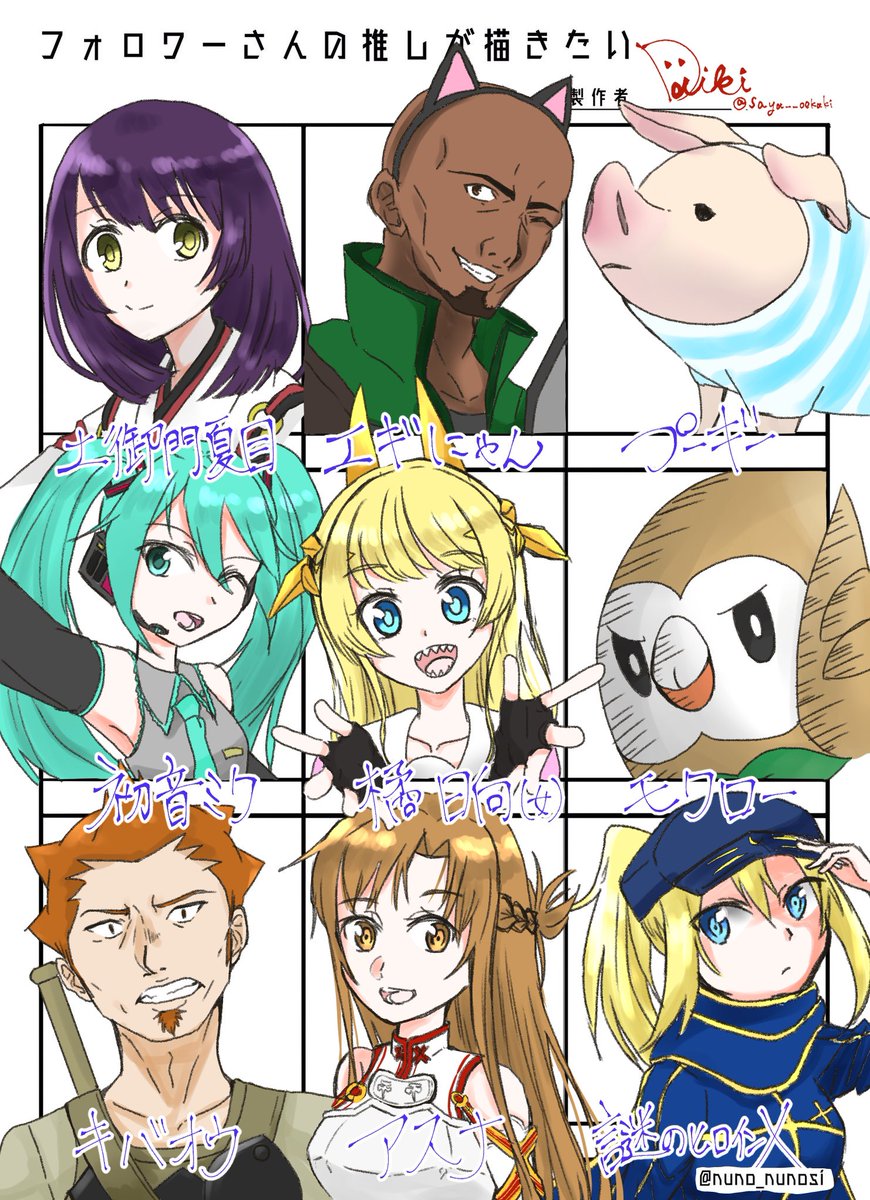 ざっくりこんなで ど真ん中はおれの今のイチ推しのキャラを描いたので実質8リクエストもらった感じです …リクエストあったキャラこれで合ってるよね… #フォロワーさんの推しが描きたい