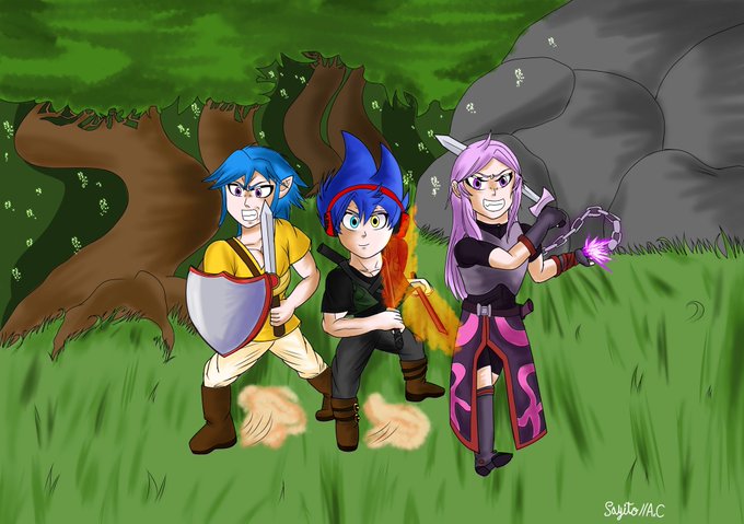 Ok, este es un dibujo al que le tenia muchas esperanzas en como iba a salir y la verdad me encanto el resultado QwQ Además de Tsuyo a ambos lados se encuentran Razu y Niebo, dos amigos que pelean junto a el ante todo ^^ #originalcharacter #MediBang #myart #originalart